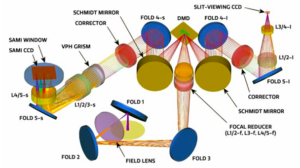 O SOAR Adaptive Module Optical Spectrograph (SAMOS) é um espectrógrafo multiobjeto configurável que se conecta entre o SAM e o SAMI. Seu funcionamento é baseado em um dispositivo de microespelhos digitais (DMD), que permite configurar “fendas” em tempo real, eliminando a necessidade de pré-imagens e máscaras físicas. Isso possibilita registrar espectros de múltiplos alvos simultaneamente.